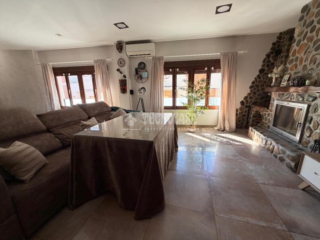 El piso destaca por su amplitud y luminosidad. Dispone de un gran salón con dos estancias diferenciadas, equipado con split de aire acondicionado y chimenea, muy luminoso gracias a sus dos amplios ventanales.
